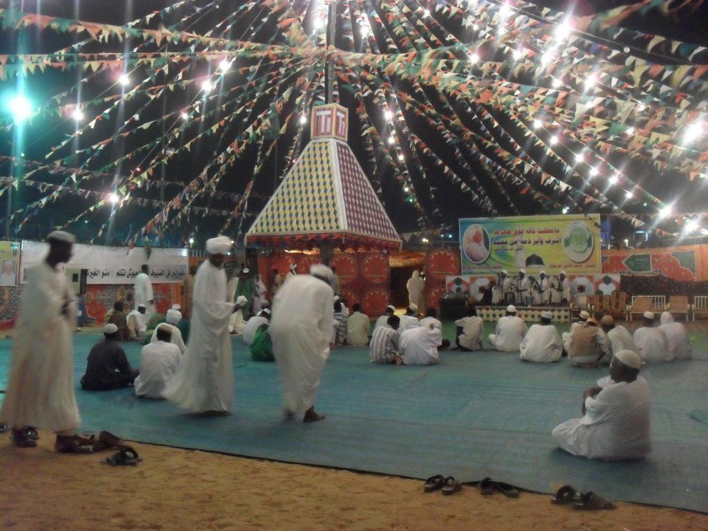وفي ميدان الخليفة بمدينة أم درمان في الخرطوم، تنتشر مواقع لبيع الحلويات بهذه المناسبة، وسرادقات لطرق صوفية تقام فيها ندوات دينية وحلقات إنشاد ديني ومديح للنبي محمد (صلّى الله عليه وسلم).