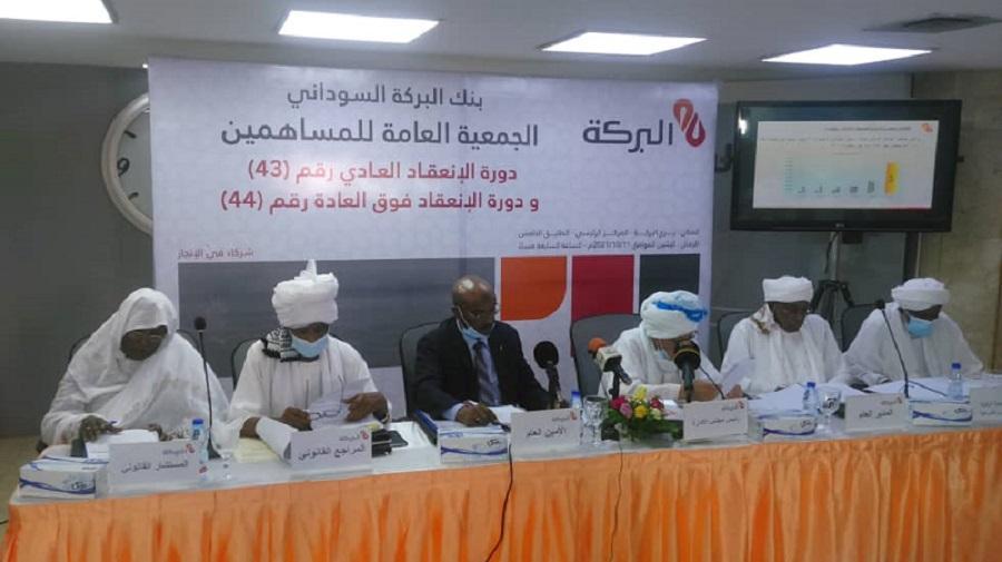 الخرطوم – (سونا) ـ صادقت الجمعية العامة لمساهمي بنك البركة السوداني في اجتماعها العادي رقم 43 والاجتماع فوق العادة رقم (44) الذي انعقد ببرج البركة بتاريخ 11/10/2021م، على التقرير المقدم من مجلس الإدارة للجمعية العامة للمساهمين، والذي اشتمل على الأوضاع الاقتصادية والأداء المالي ونتائج الأعمال المميزة للبنك خلال العام 2020م .