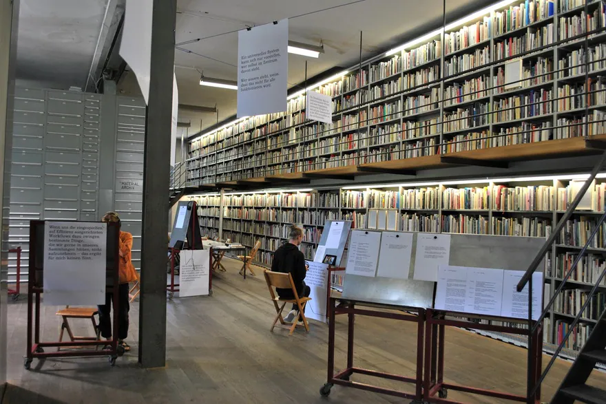يُسلط معرض مكتبة سيتّرفيرك الفنيةرابط خارجي في سانت غالن (وهي عبارة عن مُجمّع فني أقيم داخل مبان كانت تُستخدم كمصنع للصباغة سابقاً) الضوء على الكيفية التي يتم بها بناء وتصنيف فئات الفهارس في المكتبات. في الغالب، عادة ما تكون فهارس المكتبات هشة وغير بديهية. أما البحث في “سيتيرفيركرابط خارجي” فهو أمر مختلف تماما: ففي الفهرس، يُمكنك الضغط على الرفوف وعلى الفور تظهر لك صورة الجهات الخلفية للكتب. وبإمكان الأشخاص الذين أنهوا عملهم على عين المكان في المساء أن يضعوا الكتب التي استخدموها أينما يريدون. حيث يقوم روبوتان مثبتان على سكة بتصوير الطلبات الجديدة كل ليلة. أما طريقة ترتيب المكتبة فهي تتسم بالديناميكية، فمعظم الكتب والأعمال الموجودة فيها ليس لها مكان ثابت، ويمكنك أن تجدها على الرف عبر الإنترنت بفضل الروبوتان الناسخان. وفي الوقت الحالي، يتركز اهتمام هذه المكتبة، التي جعلت من البحث عملية ممتعة للغاية، على معرفة مكان تواجد الثغرات، والأمور التي لا تقال أو المسكوت عنها، في فهارس المكتبات.