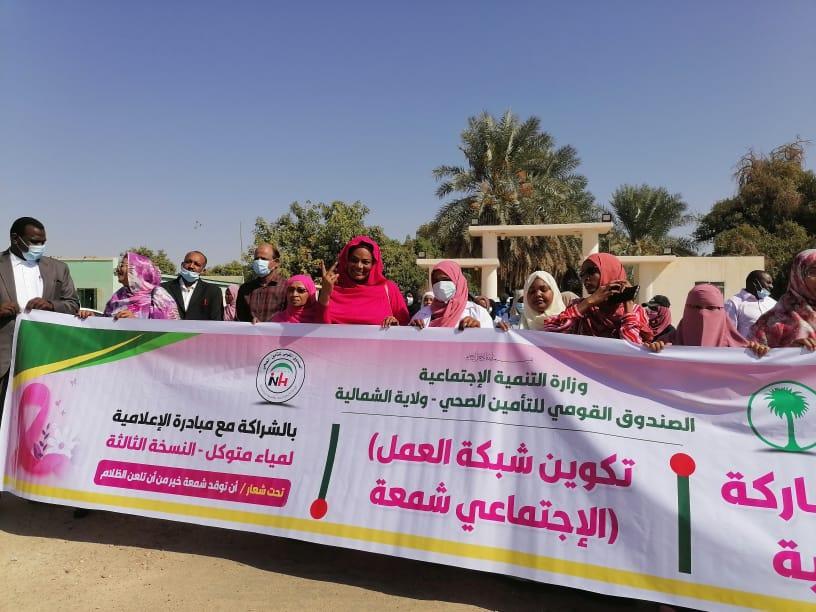 وأضافت أن المبادرة في نسختها الثالثة ستركز على بث التوعية ومناهضة سرطان الثدي والتمكين الصحي وتعزيزه وصولاً لمجتمع خال من سرطان الثدي في شهر أكتوبر الوردي مشيدة بجهود الصندوق القومي للتأمين الصحي فرع الولاية الشمالية ورعايته للاحتفال باليوم العالمي للكشف المبكر لسرطان الثدي والذي كان قد إنطلق بمارثون رياضي بمشاركة عدد من القيادات الصحية والفعاليات المختلفة.