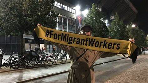 ووقفت أنيته ستوبكير ريمر، المستشارة السياسية لمنظمة العفو في الدنمرك، خارج استاد باركين في كوبنهاجن الذي تقام عليه مباراة المنتخبين في دوري الأمم الأوروبية لبيع أوشحة صفراء تحمل رسالة “من أجل العمال المهاجرين”.