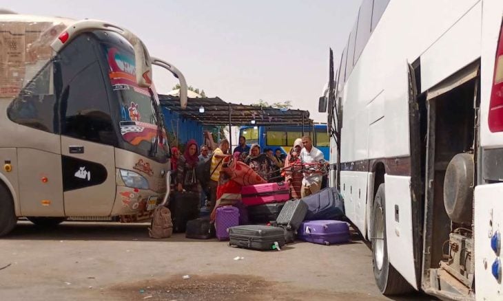 يلتقط الركاب أنفاسهم بمجرد الخروج من العاصمة ويبقون في الحافلات حتى الوصول إلى معبر أرقين الحدودي مع مصر.