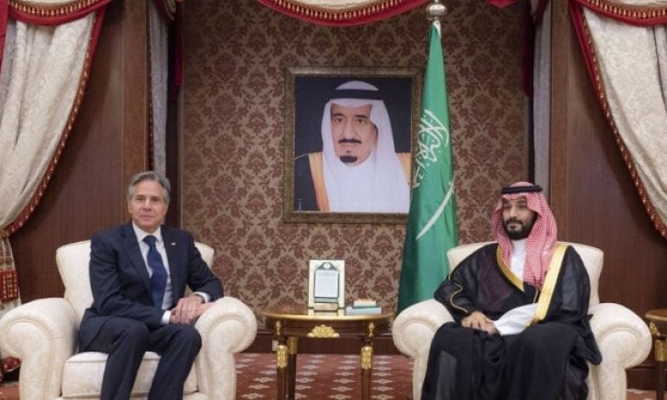 والثلاثاء، وصل بلينكن الرياض في زيارة تستغرق ثلاثة أيام، للاجتماع مع مسؤولين سعوديين ومناقشة التعاون الإستراتيجي بين البلدين في القضايا الإقليمية والعالمية، بما في ذلك التعاون الاقتصادي والأمني.