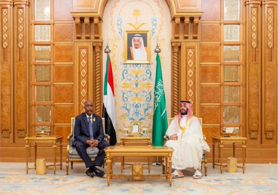 عقد رئيس مجلس السيادة الإنتقالي الفريق أول ركن عبدالفتاح البرهان وولي عهد المملكة العربية السعودية الأمير محمد بن سلمان بن عبدالعزيز آل سعود، عقدا اليوم إجتماعاً ثنائياً تم فيه بحث تعزيز العلاقات الثنائية وسبل دعم آفاق التعاون المشترك بين الخرطوم والرياض، بما يخدم مصلحة الشعبين الشقيقين.