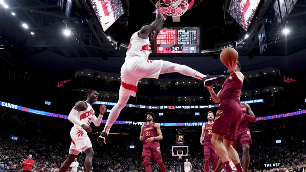 وسجّل الكاميروني باسكال سياكام 36 نقطة في المباراة التي فاز فيها فريقه تورونتو رابتورز على كليفلاند كافالييرز 124 – 121.