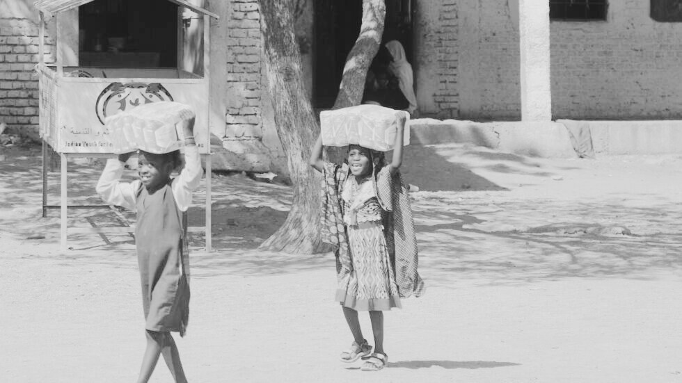 أطفال سودانيون يحملون مساعدات غذائية في مدرسة تضم نازحين قرب القضارف في السودان في السادس من آذار/مارس 2024 © – / ا ف ب
