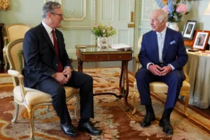 قصر باكنغهام نشر صورة للملك تشارلز الثالث (يمين) خلال تكليف زعيم حزب العمال كير ستارمر بتشكيل الحكومة الجديدة (الفرنسية)