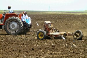مزارعون سودانيون يحرثون حقلا في القضارف – وزارة الزراعة في الولاية تقول إن أقل من نصف مساحة ما قبل الحرب زرعت في عام 2024 © – / AFP/File
