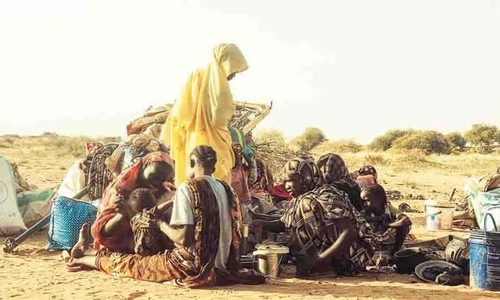 ورصدت مجاعة في 5 مناطق، من بينها معسكرات أبو شوك وزمزم والسلام شمال دارفور. وطالبت غرفة طوارئ أبو شوك للنازحين برنامج الغذاء العالمي بتنفيذ برنامج المساعدات الغذائية، مشيرة إلى أن عملية التسجيل الإلكتروني للمستهدفين اكتملت في وقت سابق بالمعسكرات، ومراكز إيواء النازحين، وسكان الولايات التي تقع في مناطق الصراعات الحادة، ويصعب الوصول إليها، توطئة لتقديم المساعدات، لكن لم يتم إنفاذ المساعدات حتى الآن.