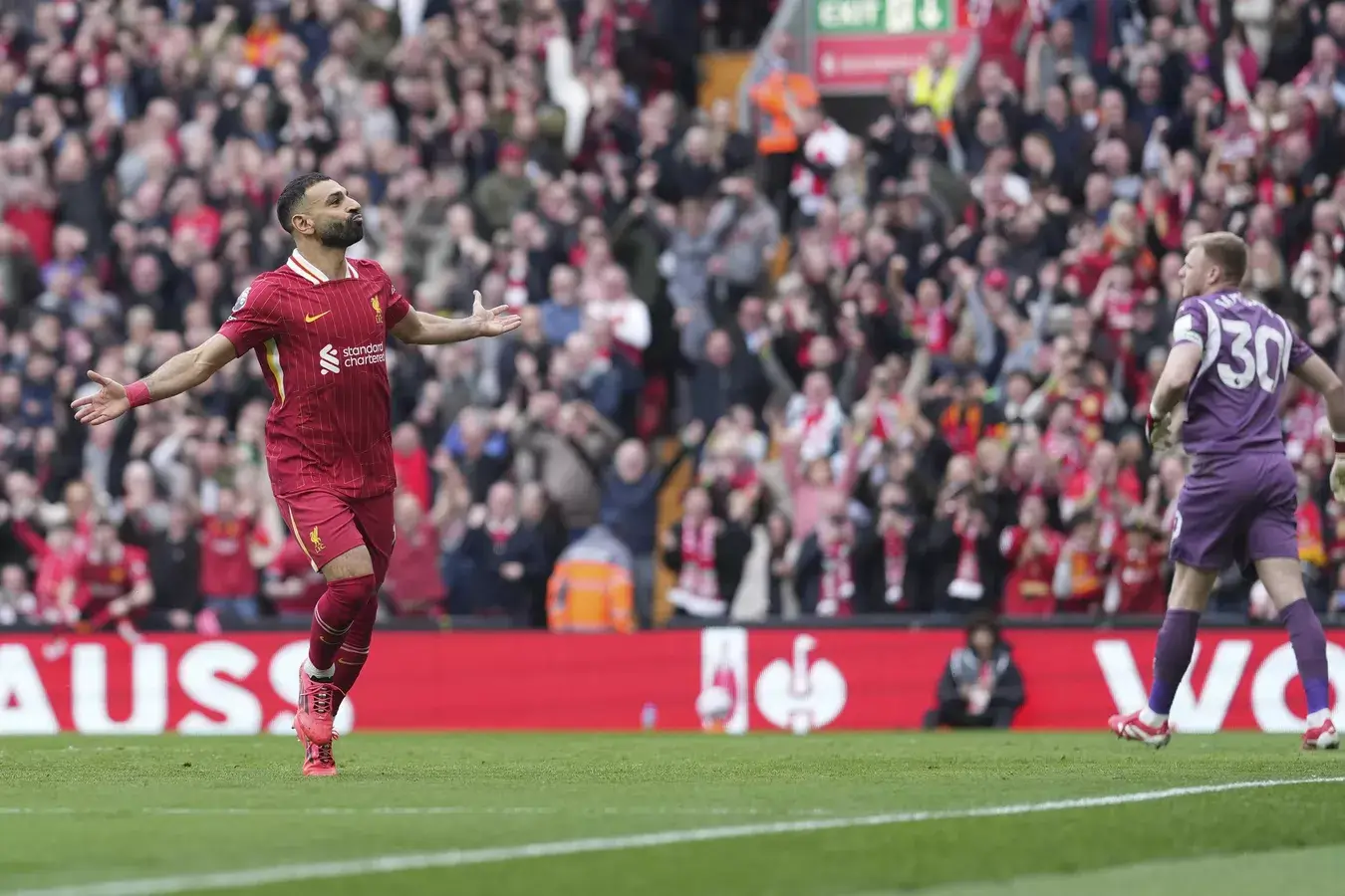 يذكر أن صلاح حقق قبل أسابيع انجازا تاريخيا بعدما أصبح الهداف التاريخي للاعبين الأجانب في الدوري الإنجليزي، بعدما سجل هدفه رقم 185 في مباراة التتويج أمام توتنهام، متجاوزا رقم سيرجيو أغويرو (184 هدفا)، كما أصبح خامس الهدافين التاريخيين في البريميرليغ، ويقترب بقوة من المركز الرابع الذي يحتله أندرو كول برصيد 187 هدفا.