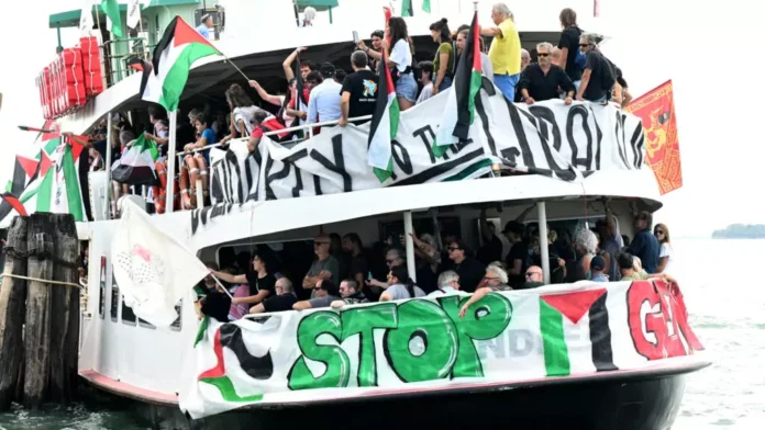 وأكد فابيوماسيمو لوزي، أحد مؤسسي المجموعة، لوكالة فرانس برس “كان الهدف من الرسالة وضع غزة وفلسطين في قلب الاهتمام العام في البندقية، وهذا ما حدث”.