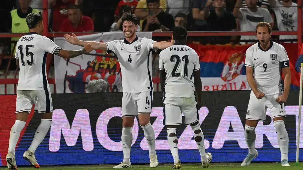 وأثمر الضغط الإنكليزي في النهاية عن هدف التقدم الذي سجله كاين بكرة رأسية بعد ركلة ركنية نفذها ديكلان رايس (33)، ثم سرعان ما أضاف نوني مادويكي الثاني بتوغل رائع في الجهة اليمنى بعد تمريرة ذكية بالكعب من مورغان رودجرز (35)، مفتتحا بذلك سجله التهديفي مع “الأسود الثلاثة” في المباراة الدولية التاسعة للاعب أرسنال الجديد.