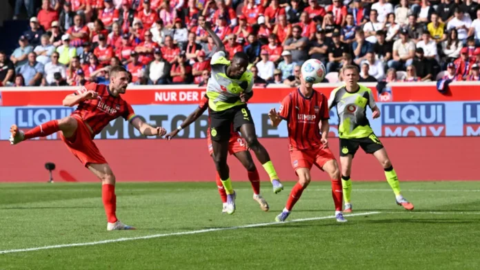برلين (أ ف ب) – واصل بوروسيا دورتموند بدايته القوية وارتقى الى الصدارة موقتا بفوزه على مضيفه هايدنهايم المنقوص 2-0 ضمن المرحلة الثالثة من الدوري الألماني لكرة القدم السبت.