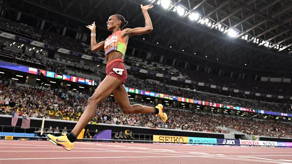 وحلّت العداءة الموهوبة الإثيوبية غوداف تسيغاي (28 عاما) الحائزة على برونزية سباق 10 آلاف م في العاصمة اليابانية، خامسة بوقت قدره 14:57.82 دقيقة، خلف الأميركية شيلبي هوليهان (14:57.42 د.).