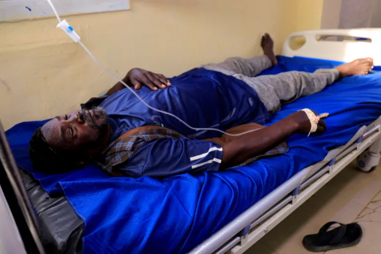 مريض مصاب بحمى الضنك يتلقى محاليل وريدية في مستشفى بالخرطوم (رويترز)