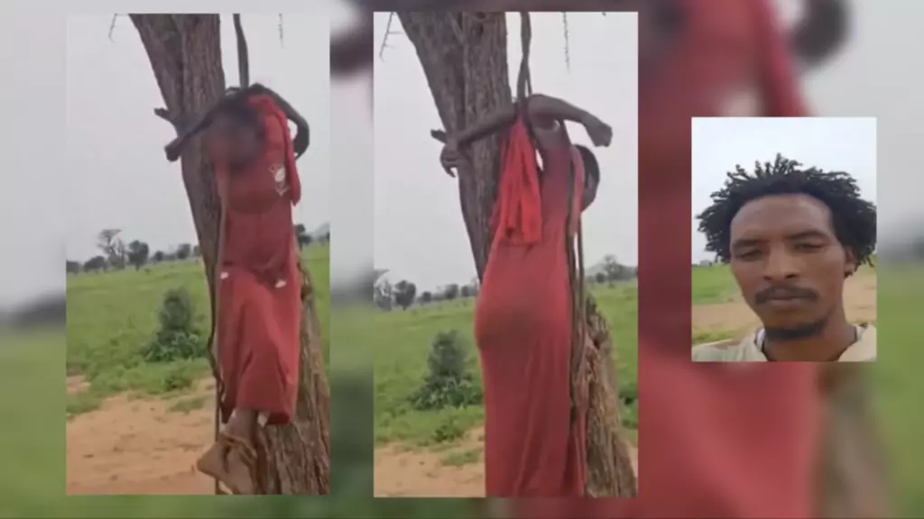 إنها صور لا تطاق، ففي مقطع فيديو بلغ طوله 38 ثانية نرى امرأة شابة ترتدي فستانا أحمر وهي معلقة من ذراعيها على جذع شجرة. كما كانت مقيدة من ساقيها. وكانت المرأة تدور حول نفسها. ولمدة ثانيتين تقريبا، تم تغيير كاميرا الهاتف الذي صور به المشهد إلى الكاميرا الأمامية لنرى وجه رجل يرتدي قميصا عسكريا دون أن يظهر أي مشاعر. وتم القول بأن هذا الرجل هو مقاتل في قوات الدعم السريع، أحد أطراف الحرب الأهلية مع الجيش السوداني، وفق ما أكدته عدة حسابات عبر وسائل التواصل الاجتماعي ووسائل إعلام.