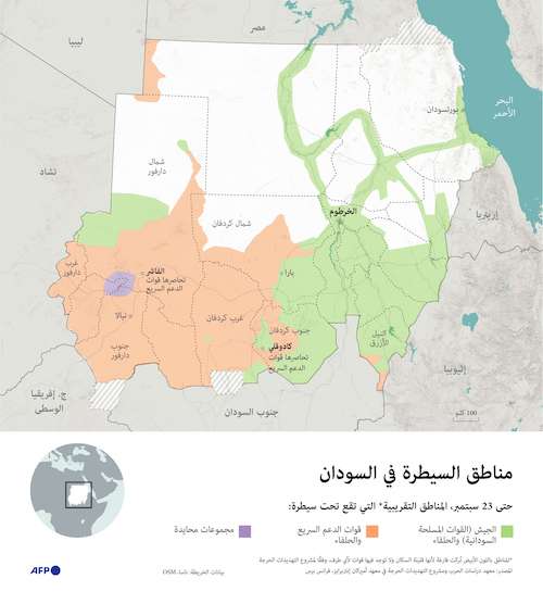 خريطة تقريبية لمناطق سيطرة الاطراف المتحاربة في السودان
