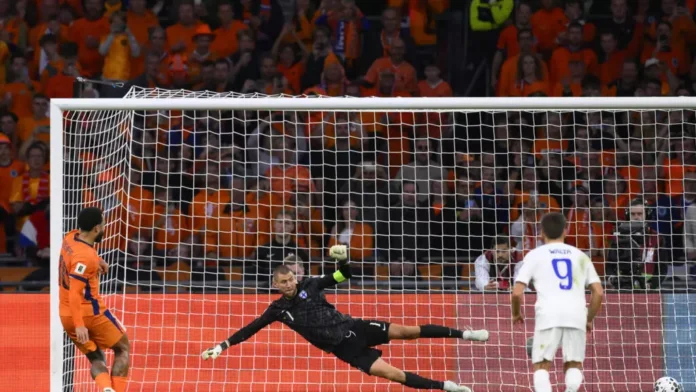 على ملعب “يوهان كرويف أرينا” في امستردام، كاد اصحاب الارض يفتتحون التسجيل بعد 5 دقائق من صافرة البداية، اثر تمريرة من كلويفرت من 30 مترا من الناحية اليسرى، داخل منطقة الجزاء قابلها دنزل دمفريس برأسه بعيدة عن القائم الأيسر.