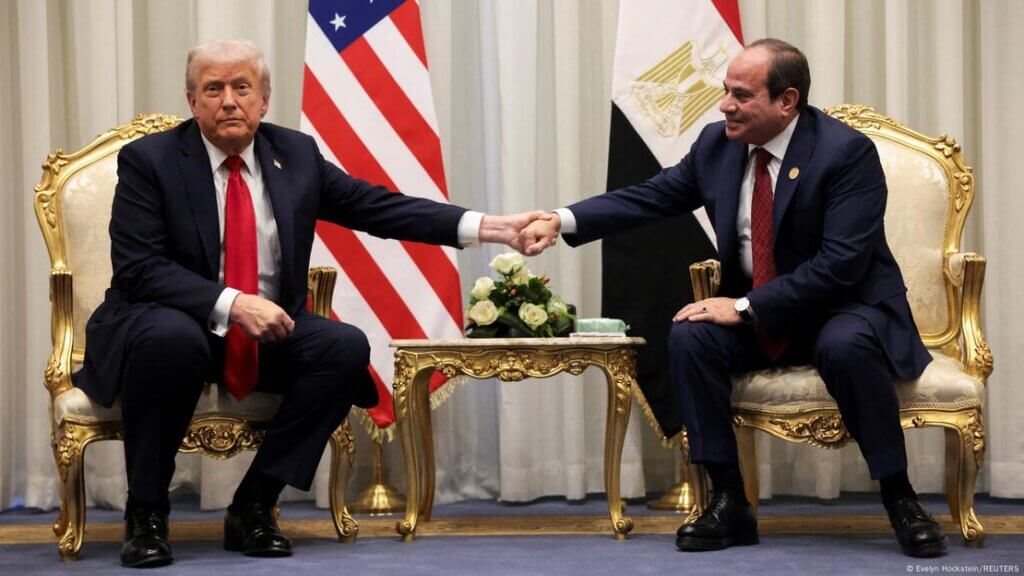 ووصل الرئيس الأمريكي دونالد ترامب إلى شرم الشيخ آتيا من إسرائيل ، حيث ألقى كلمة أمام الكنيست تحدث فيها عن “بزوغ فجر تاريخي لشرق أوسط جديد” ونهاية “كابوس طويل ومؤلم” للإسرائيليين والفلسطينيين. وتزامن خطابه مع عودة آخر الرهائن الأحياء من غزة ومئات من المعتقلين الفلسطينيين إلى ديارهم بموجب خطة أمريكية لوقف إطلاق النار بين الدولة العبرية وحماس وإنهاء حرب.