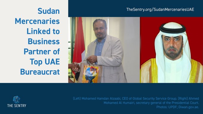 كشف تحقيق أجرته منظمة ذا سنتري (The Sentry) النقاب عن شبكة دولية غامضة وواسعة النطاق تربط مسؤولاً حكومياً إماراتياً رفيع المستوى بعملية استقدام المرتزقة إلى السودان لصالح قوات الدعم السريع. يتصدر هذه الشبكة رجل الأعمال الإماراتي محمد حمدان الزعابي، صاحب شركة “جلوبال سيكيوريتي سيرفيسز جروب” (GSSG)، التي وُجهت إليها اتهامات بتجنيد وتوريد مرتزقة كولومبيين للقتال إلى جانب قوات الدعم السريع المتهمة بارتكاب جرائم حرب وإبادة جماعية في مناطق عدة من السودان.
