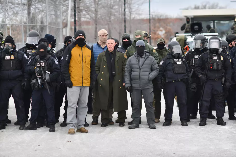 الصورة المعروضة أدناه جابت العالم… ويظهر فيها رئيس شرطة الحدود الأمريكية، غريغوري بوفينو، في 15 من يناير/كانون الثاني وهو يسير في شوارع مينيابوليس مرتديا حذاء عسكريا ومعطفا يذكّر بشكل غريب بالأزياء العسكرية التي ظهرت في ثلاثينيات القرن الماضي، مع تسريحة شعر قصيرة على الجانبين.