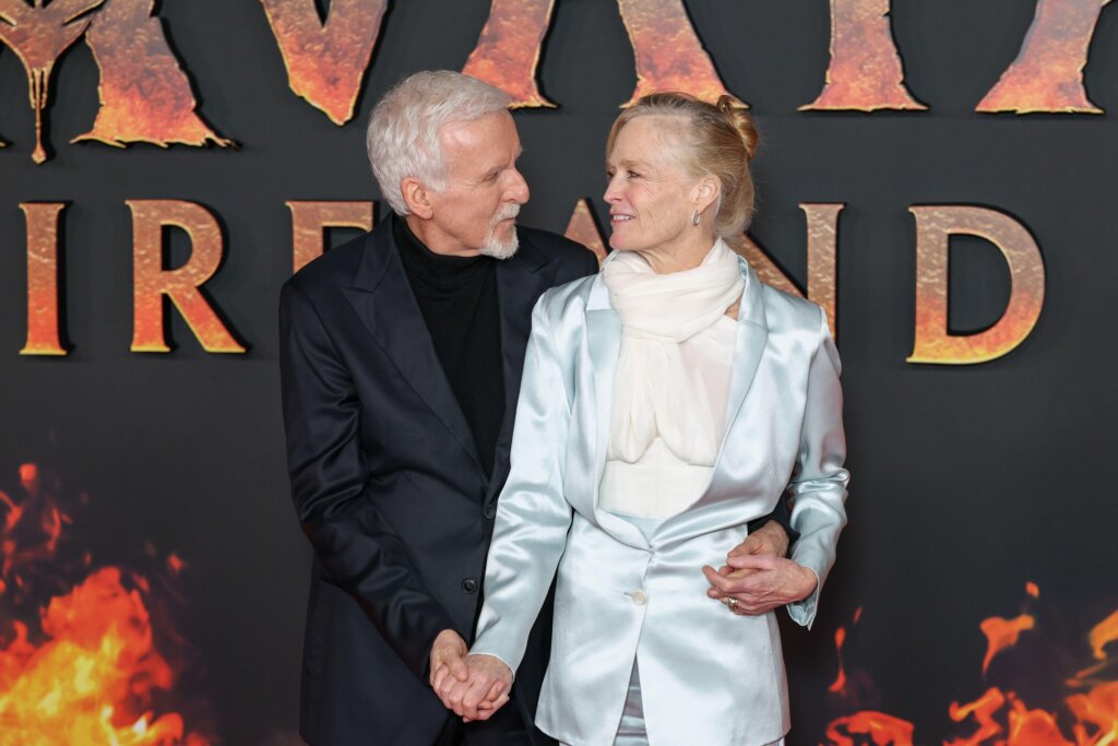 المخرج جيمس كاميرون وزوجته في حفل إطلاق الفيلم في فرنسا