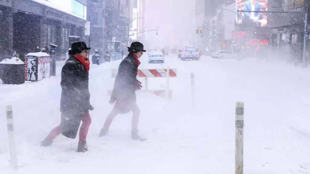 وكانت العاصفة تتجه الأحد من الجنوب إلى الشمال الشرقي، حاملة الثلوج إلى مدن مكتظة منها فيلاديلفيا ونيويورك وبوستن.