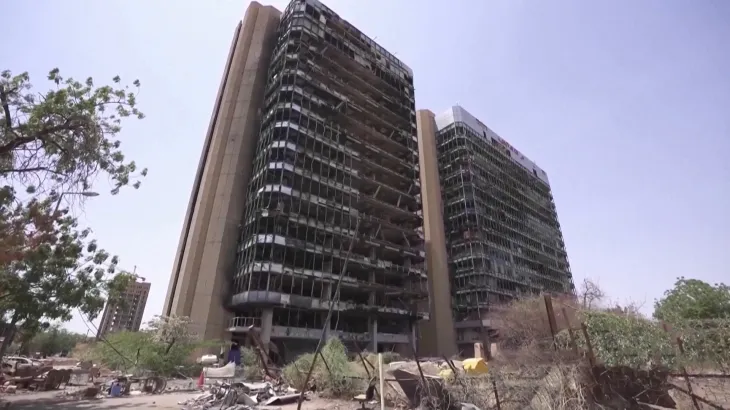 ويقف برج “شركة النيل للبترول” الذي افتُتح حين كانت الخرطوم تطمح لأن تكون “دبي إفريقيا”، فارغا ومتفحّما، شاهدا على أحلام السودان المحطّمة.